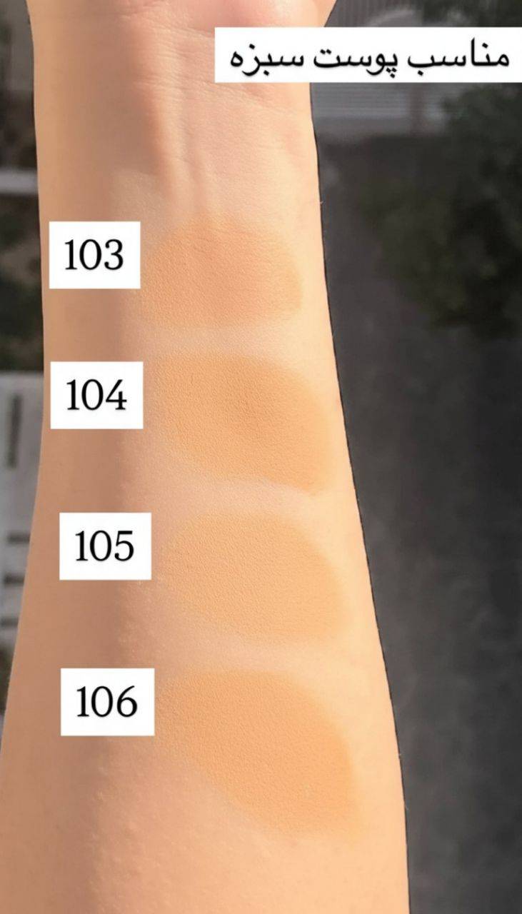 توصیه: شماره ۱۰۱ و ۱۰۲ برای پوست های روشن انتخاب شود رنگ ۱۰۴ .۱۰۵ و ۱۰۶ برای پوست های تیره انتخاب شود اگه علاقه دارین پوستتون برنزه بشه یا سولار رفتین ۱۰۳ انتخاب مناسبیه